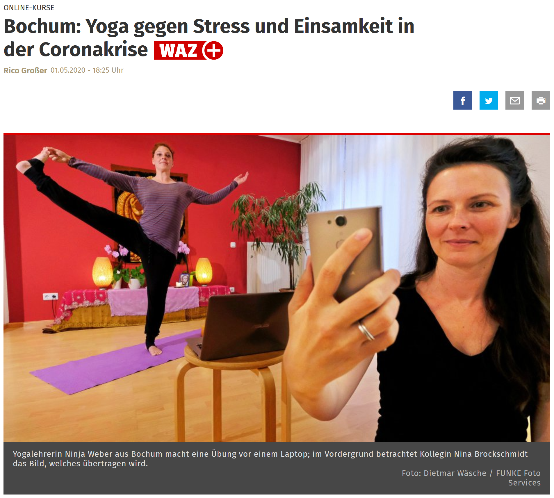 Die WAZ (Tageszeitung) hat uns im Kashi Yoga Sangam besucht, um über unser Online-Angebot zu berichten.